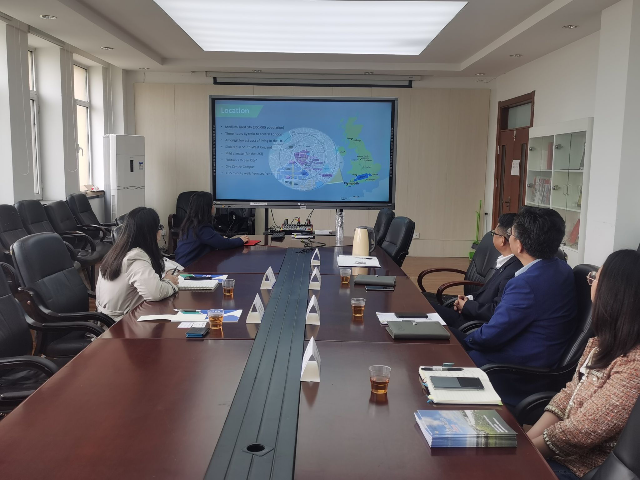 会上,计明军院长、于少强副院长对英国普利茅斯大学驻中国办事处一行的到来表示热烈欢迎,分别对各自学院的基本情况、专业特色、科学研究、教学质量保障、学生培养等方面工作进行了简要介绍。
