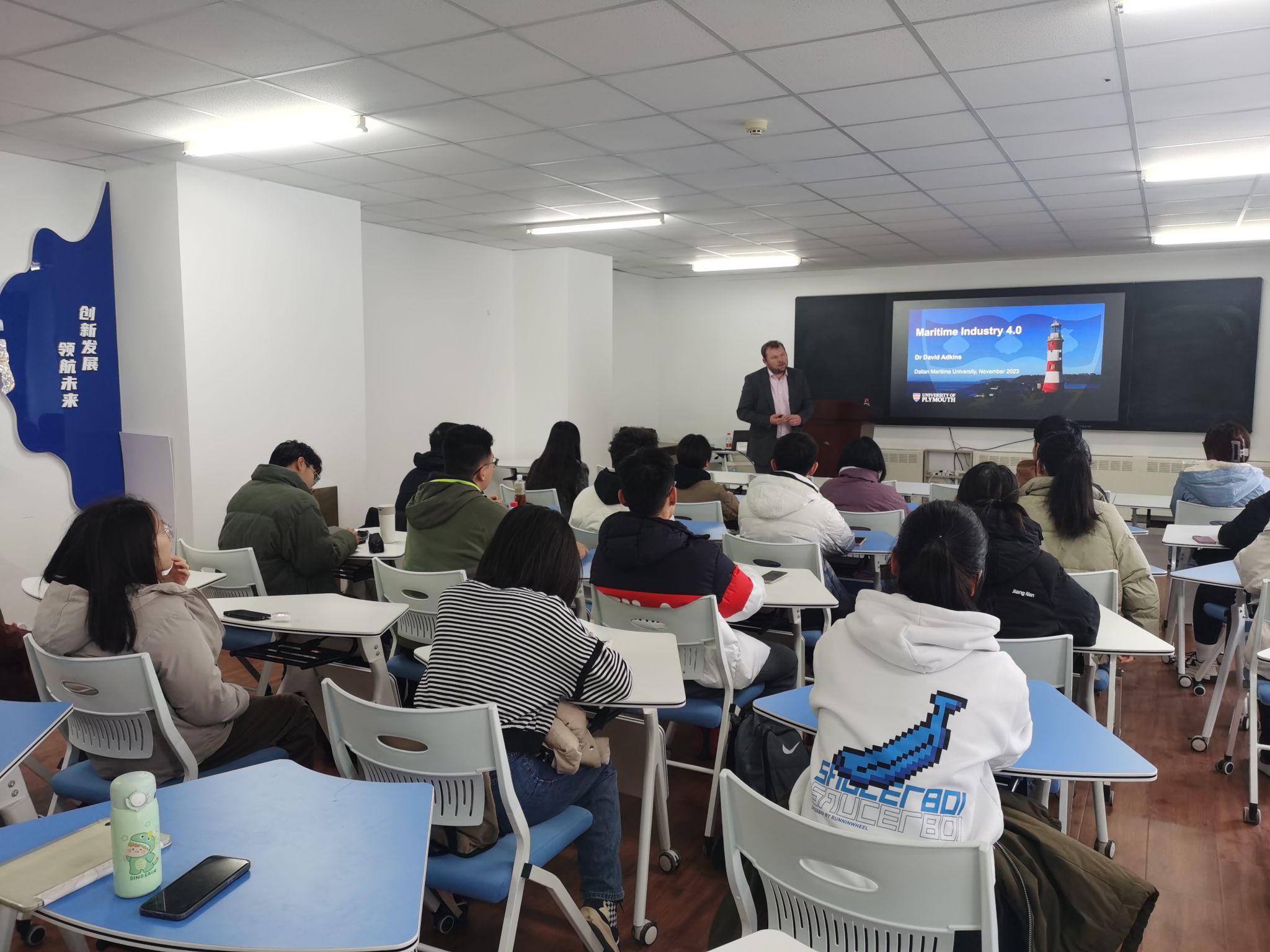 座谈会后,David Adkins副院长以“Industry 4.0”为主题开展现场授课,Anna Pan介绍了留学英国普利茅斯大学的主要事项,解答了同学们关于出国留学深造的相关问题,拓宽了师生们的国际交流渠道和视野。