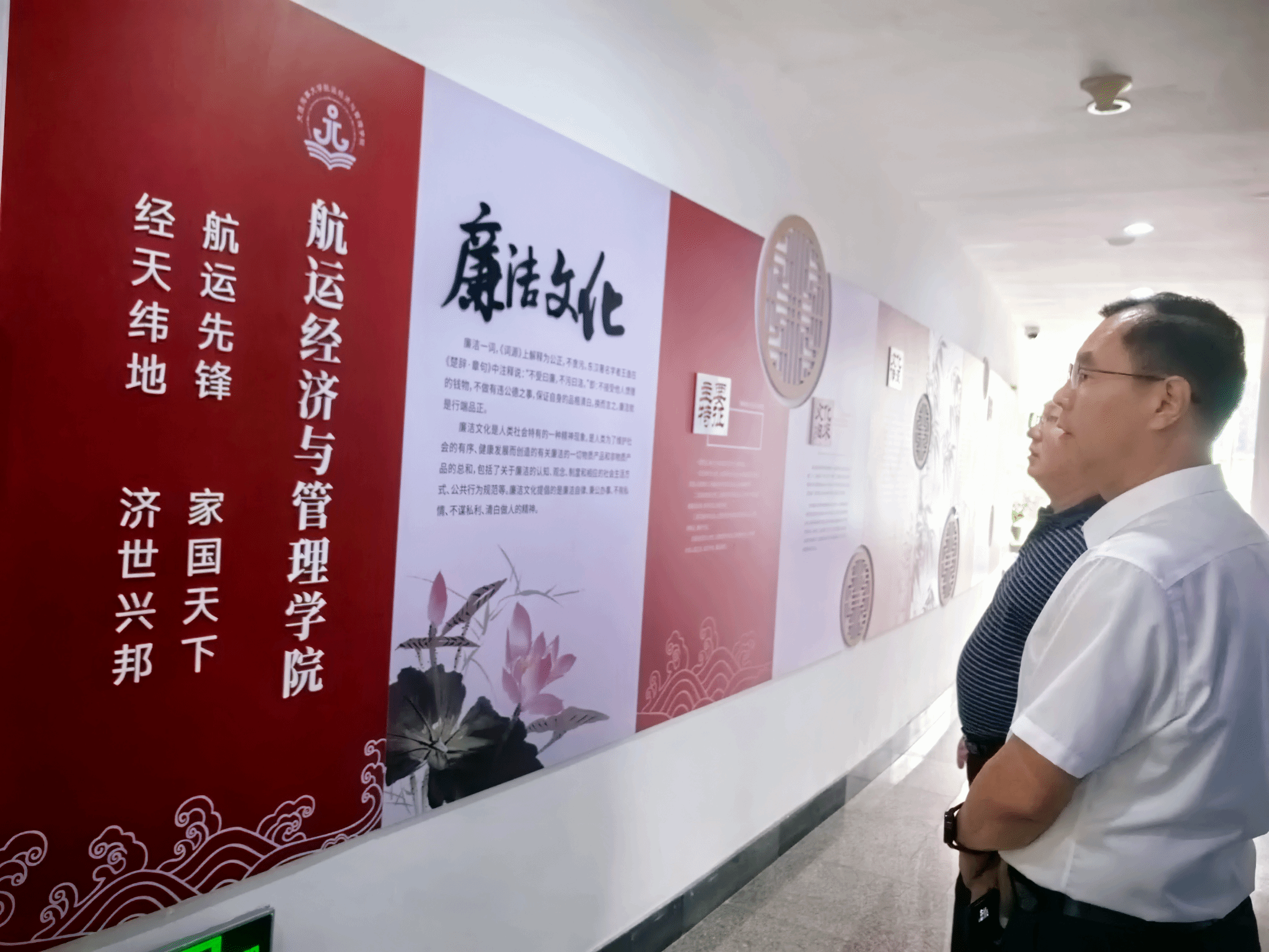 罗钟山实地参观学院廉洁文化建设长廊,听取学院廉洁文化建设思路和详细情况汇报,对学院廉洁文化建设工作给予充分肯定。罗钟山指出,学院廉洁文化阵地建设内容丰富,形式新颖,师生参与度高,具有很好的教育意义。罗钟山对学院下一步廉洁文化建设工作提出三点要求:一是认真总结廉洁文化建设工作的经验和做法,进一步提升廉洁文化建设的厚度、深度;二是结合实际,不搞铺张浪费、落实“过紧日子”要求,做好长廊内容的更新维护;三是丰富廉洁教育形式,以润物无声的方式构建良好的学院教育生态和育人环境。