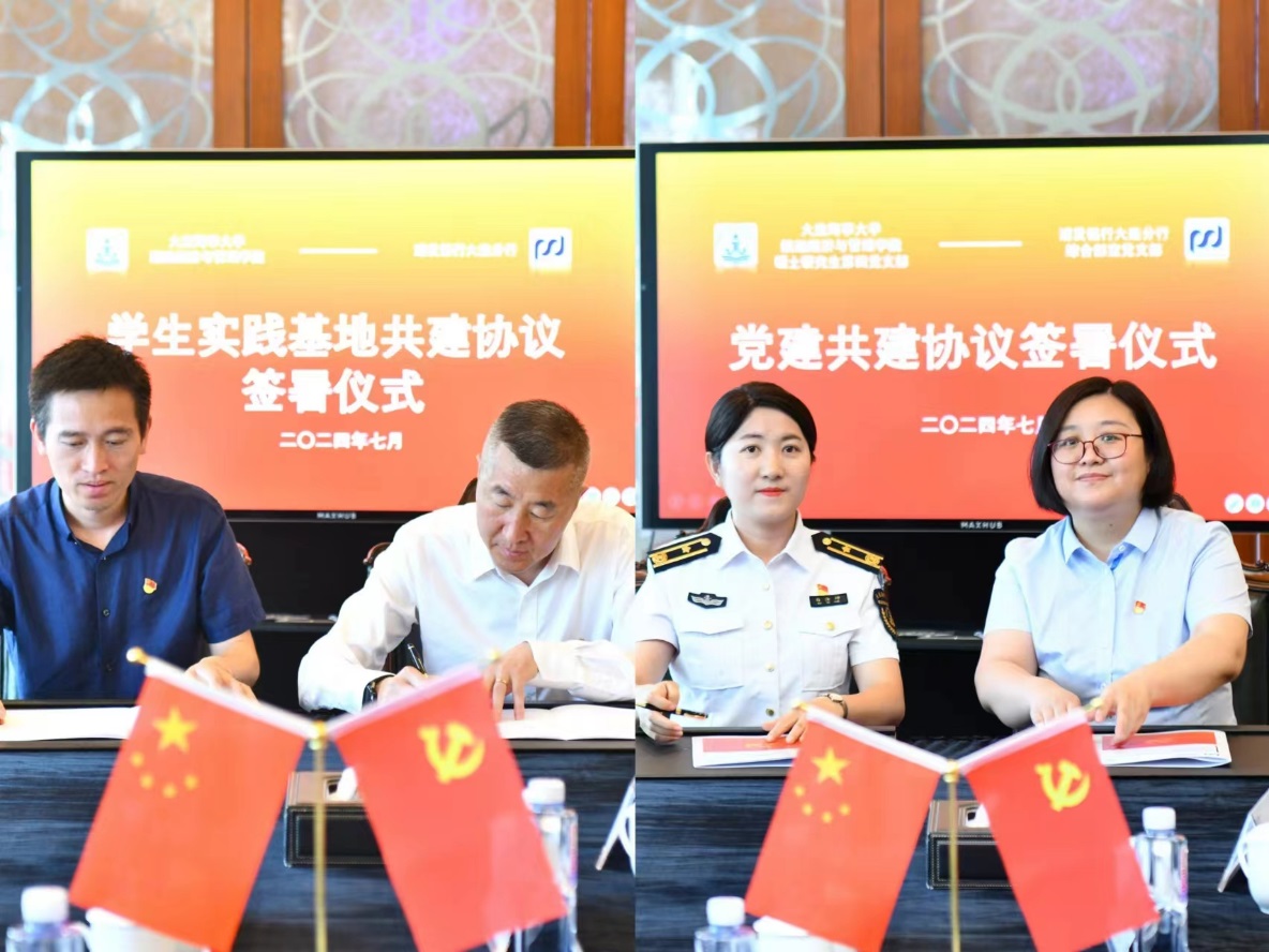 双方共同签订《william威廉英国、上海浦东发展银行大连分行共建学生实践基地协议书》。william威廉英国硕士研究生第四党支部书记白汝坤与浦发银行大连分行综合部室党支部书记赵薇签订《党建共建协议》。
