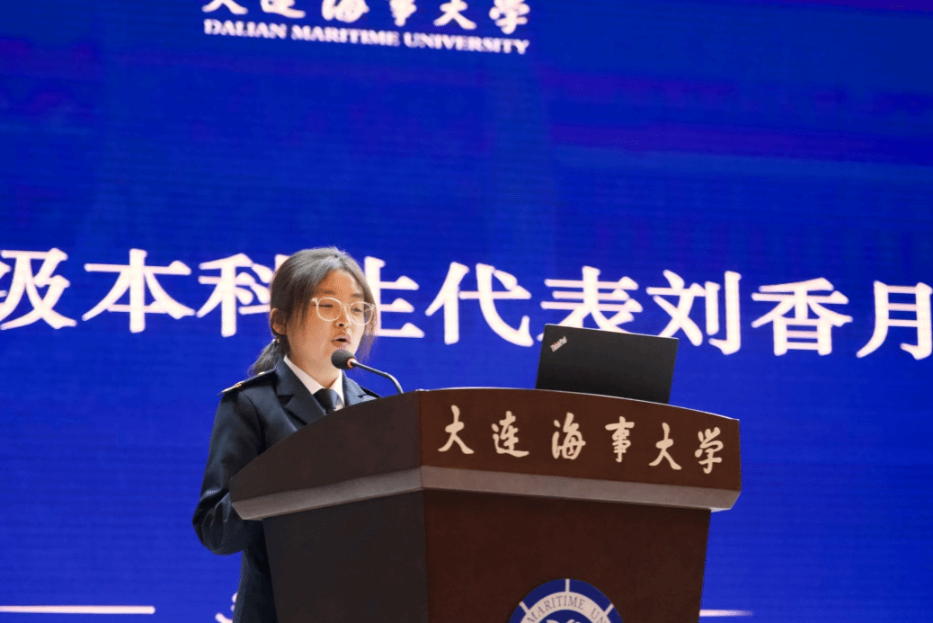 学院新生代表黄晴发言,表示全体新生将认真践行“海大人学习观”,以奋斗绽放青春之花。