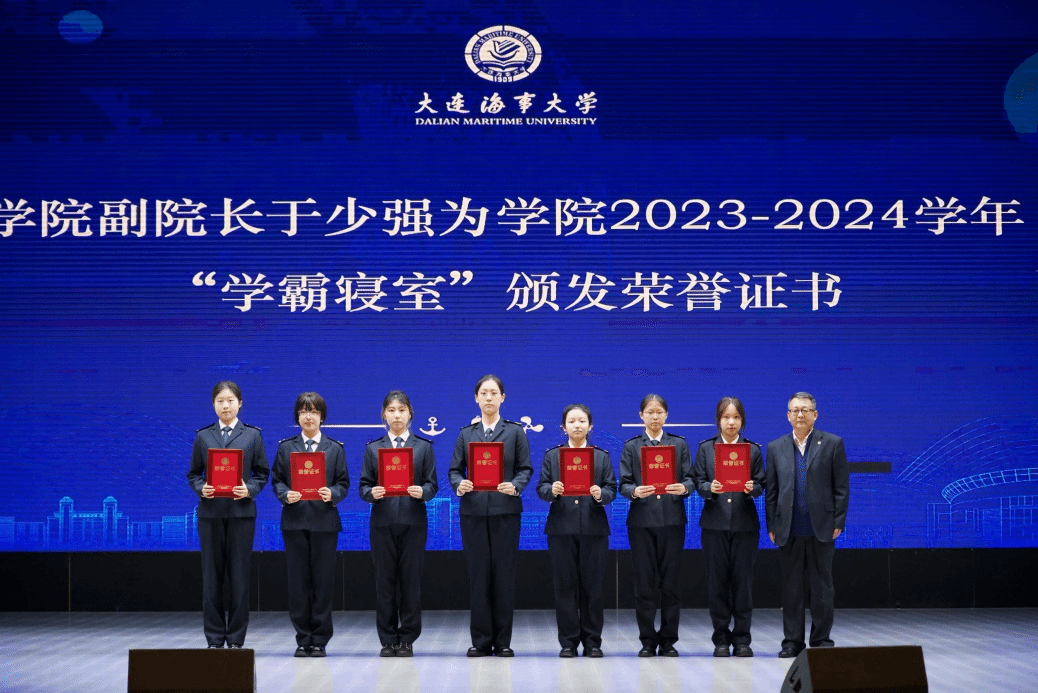 学院副院长于少强为学院2023-2024学年“学霸寝室”学生代表颁发荣誉证书。
