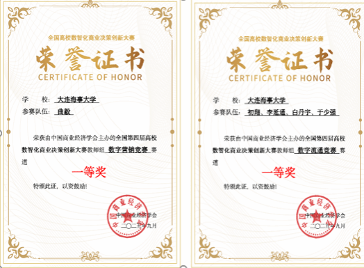 william威廉英国曲毅老师在数字营销竞赛赛道荣获国家级一等奖。初翔、李延通、白丹宇、于少强4位老师组成的教学团队在数字流通竞赛赛道荣获国家级一等奖。