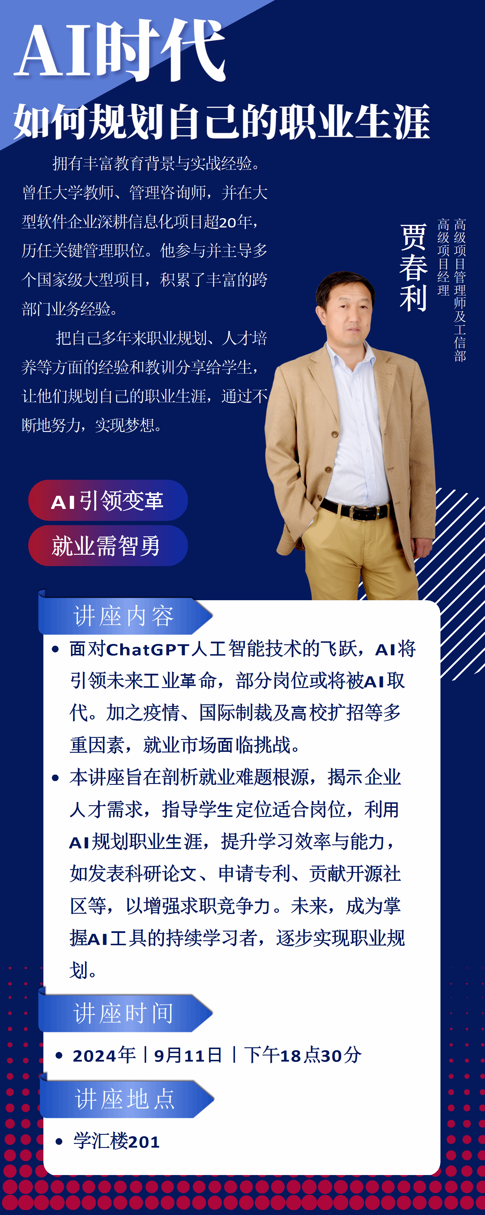 讲座题目:AI时代,如何规划自己的职业生涯