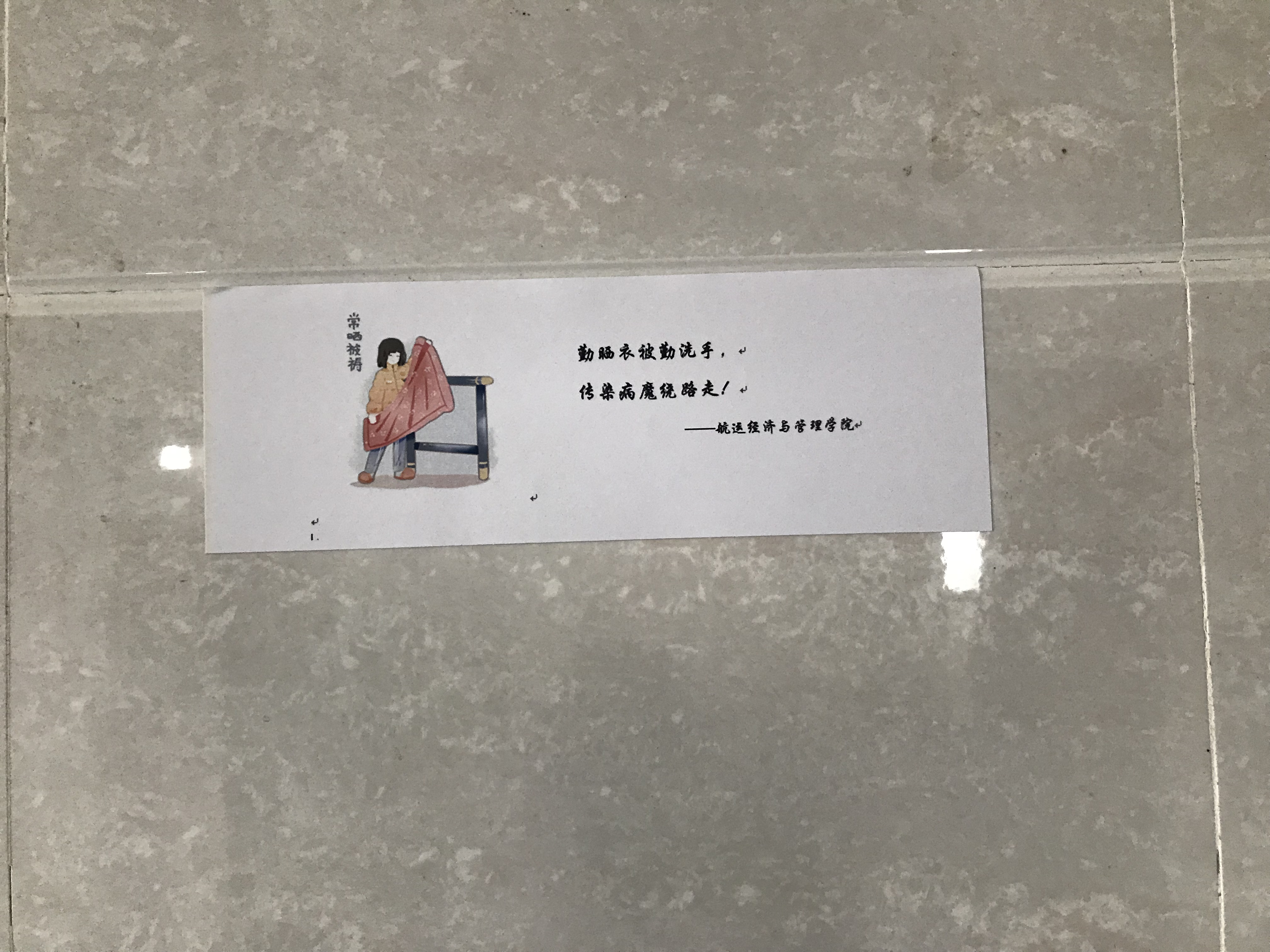 本次检查内容包括宿舍卫生检查与宿舍安全用电,经检查,学生宿舍未发现违章用电问题,学院将对本次检查中发现的安全出口灯牌坏损问题进行及时报备,并制作了防火及防传染病的宣传标语贴,在学院的每个公共区域进行粘贴宣传,切实做好春季学生宿舍安全检查及传染病防控工作。在检查中同学们并无违反宿舍安全管理规定的现象,这不仅对如何创建文明宿舍树立了榜样,也创造了一种和谐融洽的氛围。
