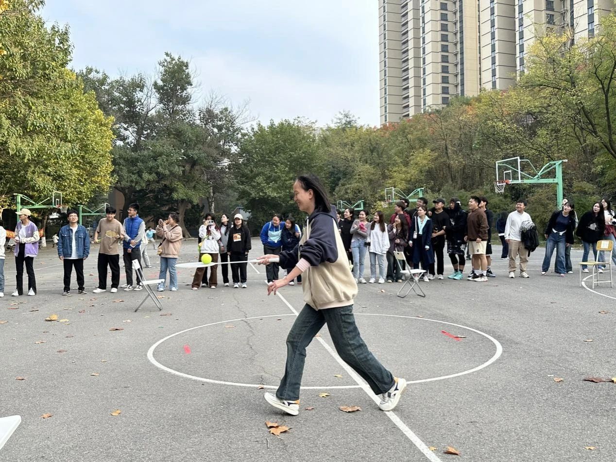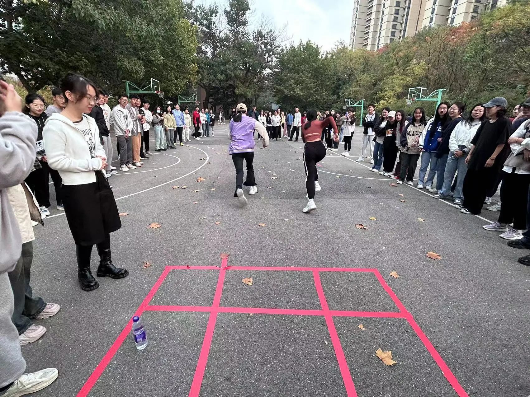 接着进行的是“接力跑井字棋”项目,通过把接力跑和井字棋结合起来,十四支队伍两两PK,上演速度和智力的双重比拼。同学们迅速跑到棋盘处,增添或者移动自己的棋子,并完成迎面接力,率先完成三个棋子连线的队伍获胜。这个项目的比拼更为焦灼,同学们在瞬息万变的局势中迅速思考对策,同时进行速度和心理的博弈,精彩程度令人叹为观止。