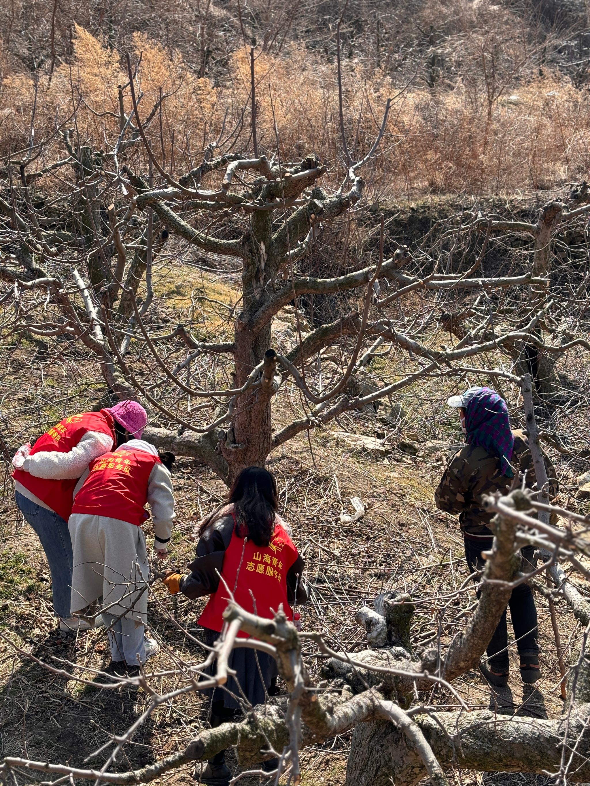 在面对修剪枝条这种具有技术含量的农活时,果园里的工作人员亲自为我们示范,手把手地教我们如何修建枝条。同学们认真倾听,学习课本上接触不到的农业实践知识,并且亲自实践,在工作人员的指导下进行了苹果树的枝条修剪。同学们乐此不疲,争先恐后地参与其中,在实践中感受农业的魅力。