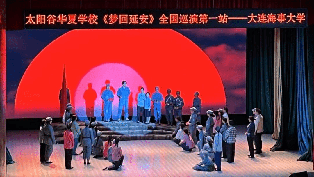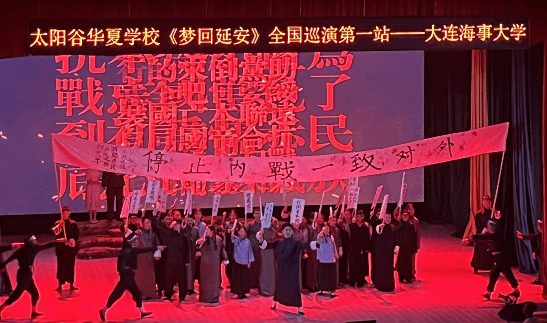 田黎明同学在她的笔记中写道:“《梦回延安》是一场穿越时空的旅程,它不仅仅是一场演出,更是一次心灵的洗礼。通过这场巡演,太阳谷华夏学校的师生和家长们将延安精神带到了我们的眼前,让每一位观众都能感受到那个时代革命先辈们的坚定信念和不屈不挠的斗志。舞台上每一个细节都透露出对历史的尊重和对文化的传承,演员们精湛的演技更是将我们带回到了那个充满激情和理想的年代。我被革命先辈们为了理想和信念不惜一切代价的精神深深打动,尤其是‘停止内战、一致对外’旗帜出现的那一刻,仿佛能听见历史的回响,激励我们在任何困难面前都不忘初心,砥砺前行。”
