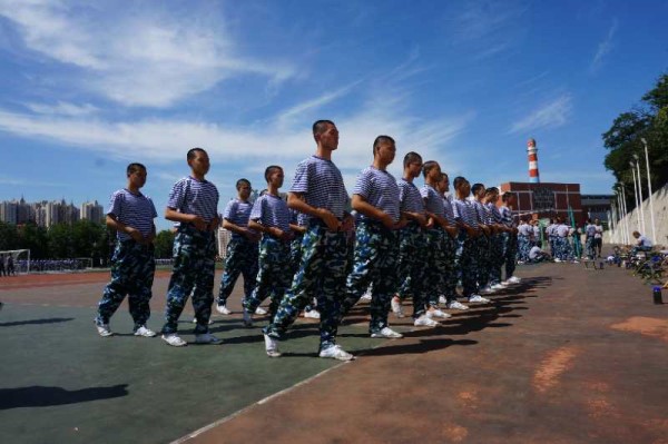 今日的训练内容与前几日的内容相符,仍然是站军姿、转体、齐步走、踢正步的训练,但强度与昨日相比略有增加。尽管炎热天气给同学们带来了不适,但是在教官严厉的指导与监督下,同学们努力坚持,以军人的标准要求自己。而后,在教官标准清晰的口令下,同学们开始练习齐步走的动作。为了确保同学们动作的整齐标准,教官们亲自做了示范,赢得了同学们的阵阵掌声。在看过教官们的正确示范后,同学们反复进行了训练,用心完成了每一项规定的动作。纵然高温酷暑;纵然汗水流过了后背,但每个人都在为了完美而奋斗。