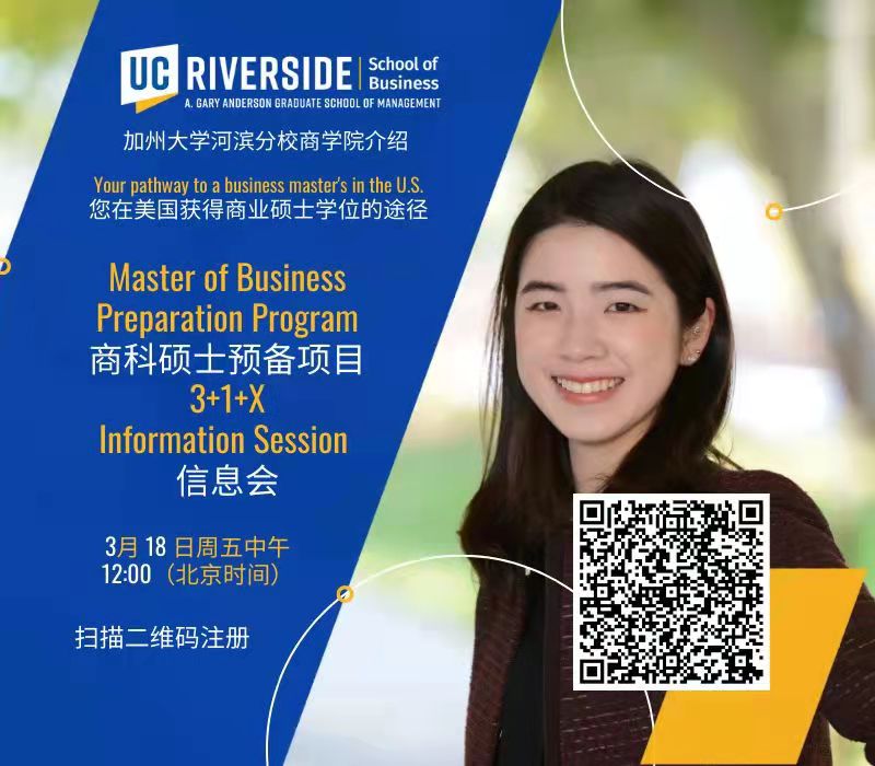 美国加州大学河滨分校商学院上课硕士预备项目3+1+X信息会