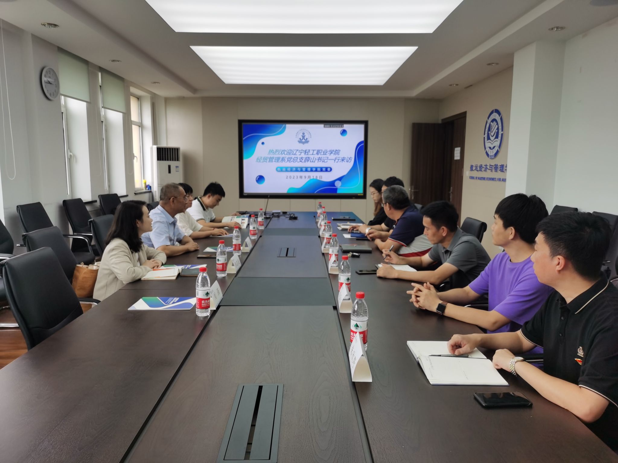 9月18日,辽宁轻工职业学院经贸管理系党总支书记薛山、副书记李芷逸、副主任柳旭一行5人来访我院进行调研。学院党委书记张罕育主持交流研讨。学院副书记王振兴、学生党支部书记于馨、团委书记兼学生党支部书记刘威江、综合交通运输协同创新中心党建工作负责人李海江等参加了座谈。