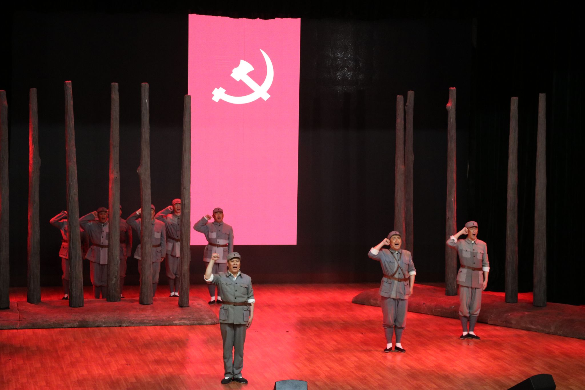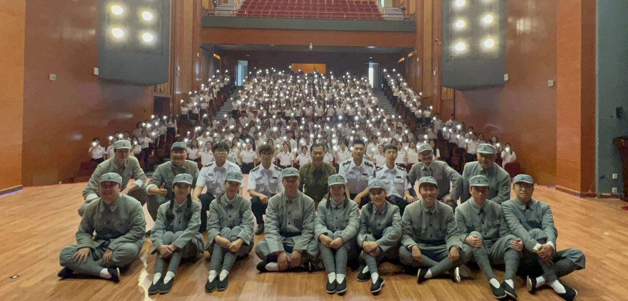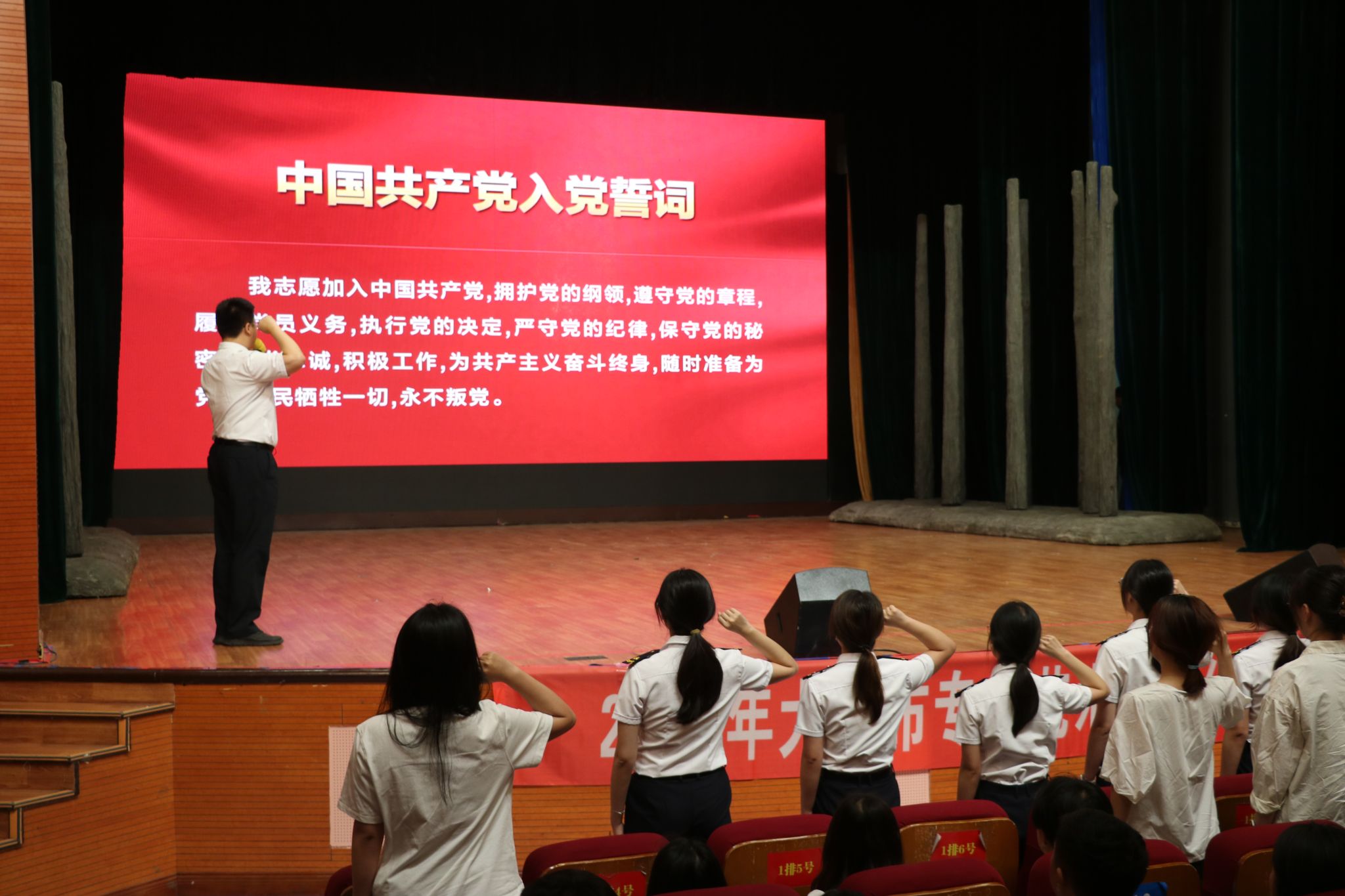 本次活动特别设置了学生与专业演员共同演出的环节。尽管学生们并非专业演员,但凭借对角色的深刻理解和真挚情感,生动展现了革命先辈的精神风貌。学生们的精彩表现赢得了现场观众的阵阵掌声,也让他们在参与演出的过程中,进一步坚定了理想信念。演出最后,全体党员面向鲜红的党旗,庄严地举起右拳,重温入党誓词。铿锵有力的誓言在会场内久久回荡。